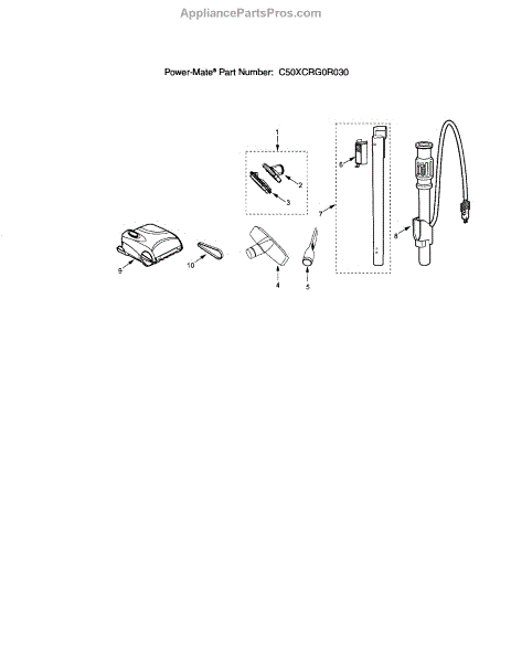 Parts for Kenmore 116.25512502 (11625512502, 116 25512502): Attachments Parts