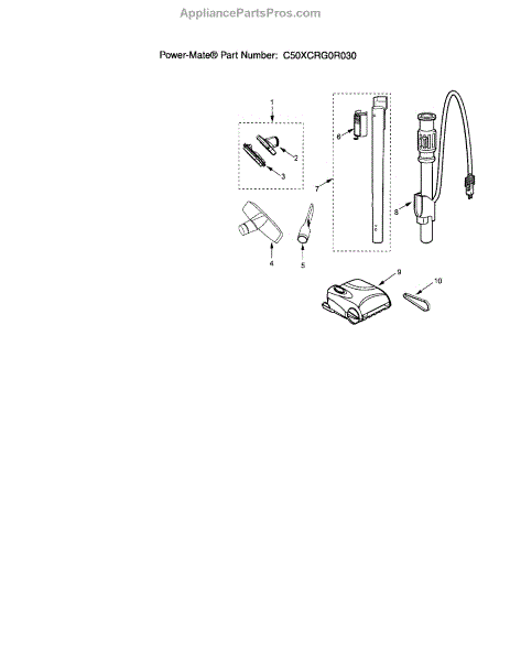 Parts for Kenmore 116.25512504 (11625512504, 116 25512504): Attachments Parts