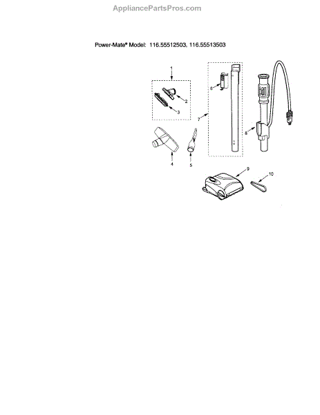Parts for Kenmore 116.25513503 (11625513503, 116 25513503): Attachments Parts