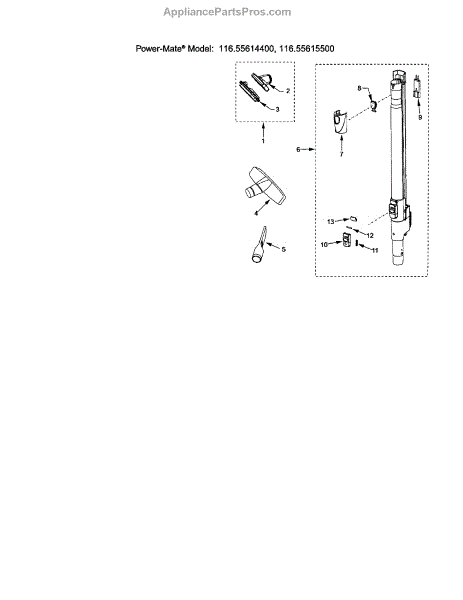 Parts for Kenmore 116.25614500 (11625614500, 116 25614500): Attachments Parts