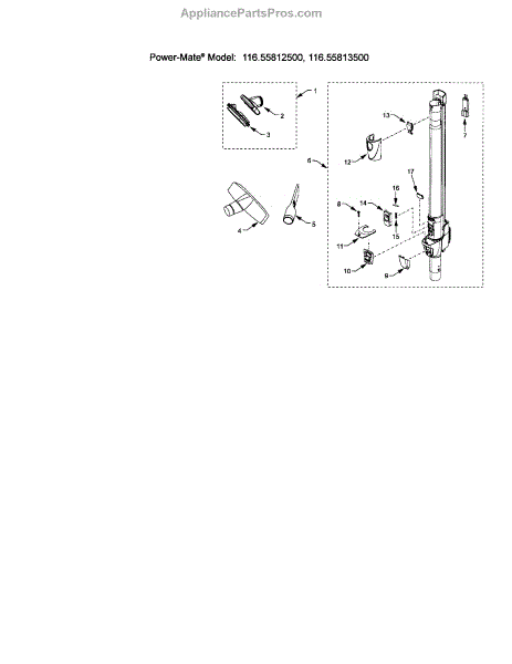 Parts for Kenmore 116.25812500 (11625812500, 116 25812500): Attachments Parts
