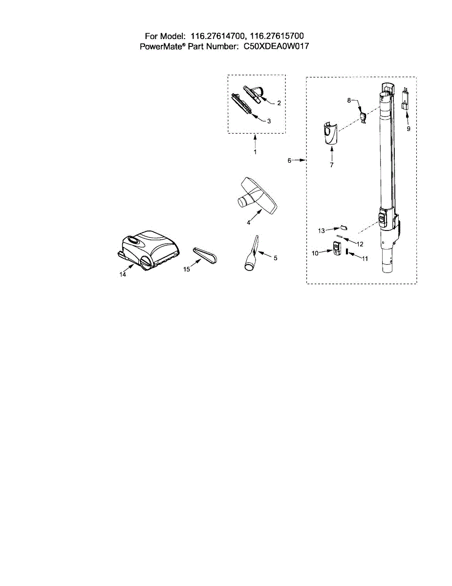 Parts for Kenmore 116.27615700 (11627615700, 116 27615700): Attachments Parts