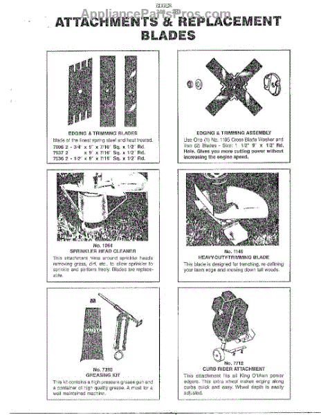 Parts for Ayp Frigidaire Home Products BPT75BR: Attachments / Replacement Blades Parts