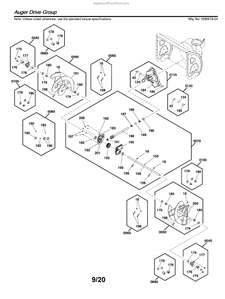 Parts for Briggs & Stratton 1696619-04: Auger Drive Parts