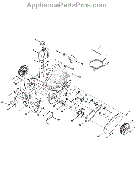 This replacement part is a screw. It is a genuine replacement part made by MTD. Typically screws are found in many different types of machines. These parts are important in holding different pieces together so that the user is able to operate the appliance effectively. A replacement screw might be needed if some parts of the appliance are loose or missing from place. Screws can become stripped over time with normal equipment use. If this is the case it is recommended that they be replaced as soon as possible. The repair for this screw is simple and will most likely require common household tools as well as pliers if the previous part is lodged in place. This screw is made of durable metal. This part is sold individually and is sourced directly from the manufacturer to ensure proper fit. This is a genuine OEM replacement part.