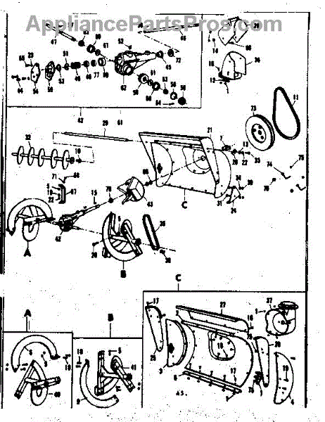 Parts for Craftsman 53682401: Auger And Gear Case Assembly Parts