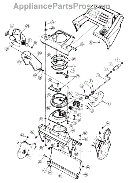 Chute crank knob for snow throwers. Installs on the chute rotation control. Replace if cracked, broken, or missing to restore manual chute adjustment.