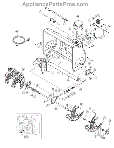 This is a left hand auger assembly that is included with many snowblowers. The auger consists of several rotating blades that collect snow and move it through the augur housing to the chute.If the auger isn't turning and the left hand assembly needs to be replaced, it will require a 3/8 inch socket, a pair of needle-nose pliers, a ½ inch socket, and a grease pump. For the replacement, remove the auger mounts and disassemble the auger shaft transmission to release the auger shaft. Remove the broken or damaged left hand auger assembly after removing any spacers and bushings. Replace the part and reassemble all of the components on the snowblower.This is an authentic OEM replacement part that is sourced directly from the manufacturer. It is sold as an individual component. The left hand auger assembly is created to be used with snowblowers made by Yard-Man, Craftsman, Huskee, Cub Cadet, MTD, Troy-Bilt, and Yard Machines.