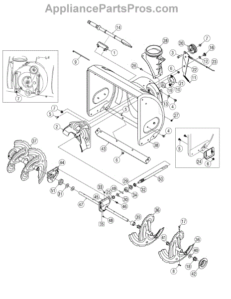 This is a left hand auger assembly that is included with many snowblowers. The auger consists of several rotating blades that collect snow and move it through the augur housing to the chute.If the auger isn't turning and the left hand assembly needs to be replaced, it will require a 3/8 inch socket, a pair of needle-nose pliers, a ½ inch socket, and a grease pump. For the replacement, remove the auger mounts and disassemble the auger shaft transmission to release the auger shaft. Remove the broken or damaged left hand auger assembly after removing any spacers and bushings. Replace the part and reassemble all of the components on the snowblower.This is an authentic OEM replacement part that is sourced directly from the manufacturer. It is sold as an individual component. The left hand auger assembly is created to be used with snowblowers made by Yard-Man, Craftsman, Huskee, Cub Cadet, MTD, Troy-Bilt, and Yard Machines.