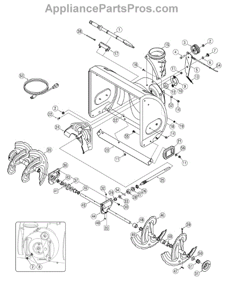 This is a left hand auger assembly that is included with many snowblowers. The auger consists of several rotating blades that collect snow and move it through the augur housing to the chute.If the auger isn't turning and the left hand assembly needs to be replaced, it will require a 3/8 inch socket, a pair of needle-nose pliers, a ½ inch socket, and a grease pump. For the replacement, remove the auger mounts and disassemble the auger shaft transmission to release the auger shaft. Remove the broken or damaged left hand auger assembly after removing any spacers and bushings. Replace the part and reassemble all of the components on the snowblower.This is an authentic OEM replacement part that is sourced directly from the manufacturer. It is sold as an individual component. The left hand auger assembly is created to be used with snowblowers made by Yard-Man, Craftsman, Huskee, Cub Cadet, MTD, Troy-Bilt, and Yard Machines.