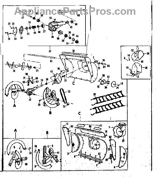 Parts for Craftsman 53682563: Auger Housing Assembly Parts