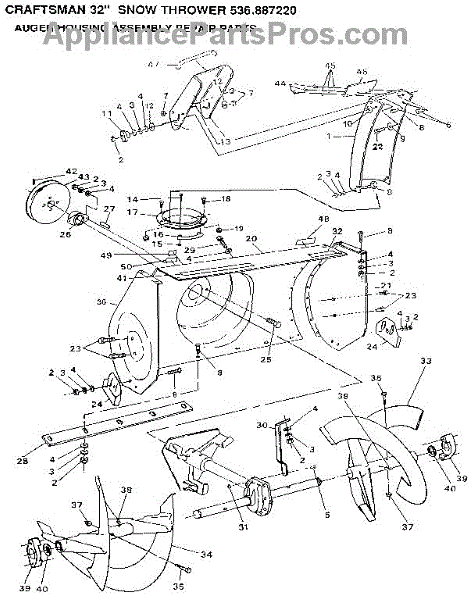 Parts for Craftsman 536887220: Auger Housing Assembly Repair Parts