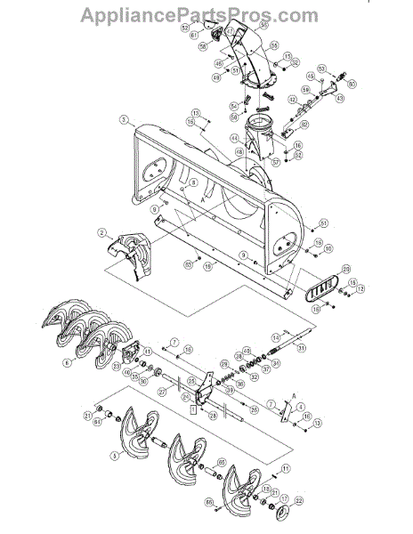 This impeller assembly is an authentic OEM replacement part sourced directly from the manufacturer for use in snowblowers and snow throwers. When the snowblower is in operation, snow is pulled into the auger which then pushes it toward the impeller. The impeller shoots the snow out of the snowblower, moving it out of the path and to another location. If the impeller is not working, the equipment won't function properly. Normal use and large debris can cause damage to the impeller. If the snowblower makes shrieking noises or locks up and won't operate, the impeller should be checked and replaced. Make sure the snowblower is cool and remove the spark plug to prevent accidental engine firing. Separate the bucket from the housing and remove the belt pulley. Next, remove the side auger carriers and pull the impeller assembly out. Install the new assembly and reverse the process to put the snowblower back together. Reinstall the spark plug and test the machine.This impeller assembly is sold individually. This impeller assembly is designed to be used with snow blowers and snow throwers manufactured by MTD, Cub Cadet, Troy Bilt, and Yard-Man.