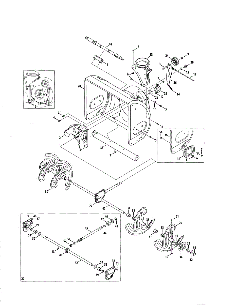 This is a left hand auger assembly that is included with many snowblowers. The auger consists of several rotating blades that collect snow and move it through the augur housing to the chute.If the auger isn't turning and the left hand assembly needs to be replaced, it will require a 3/8 inch socket, a pair of needle-nose pliers, a ½ inch socket, and a grease pump. For the replacement, remove the auger mounts and disassemble the auger shaft transmission to release the auger shaft. Remove the broken or damaged left hand auger assembly after removing any spacers and bushings. Replace the part and reassemble all of the components on the snowblower.This is an authentic OEM replacement part that is sourced directly from the manufacturer. It is sold as an individual component. The left hand auger assembly is created to be used with snowblowers made by Yard-Man, Craftsman, Huskee, Cub Cadet, MTD, Troy-Bilt, and Yard Machines.