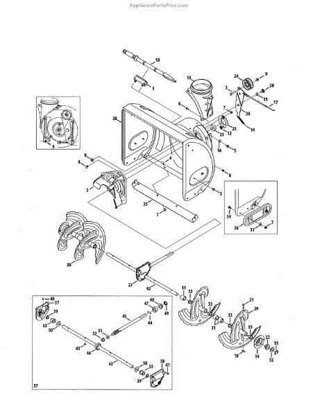 This is a left hand auger assembly that is included with many snowblowers. The auger consists of several rotating blades that collect snow and move it through the augur housing to the chute.If the auger isn't turning and the left hand assembly needs to be replaced, it will require a 3/8 inch socket, a pair of needle-nose pliers, a ½ inch socket, and a grease pump. For the replacement, remove the auger mounts and disassemble the auger shaft transmission to release the auger shaft. Remove the broken or damaged left hand auger assembly after removing any spacers and bushings. Replace the part and reassemble all of the components on the snowblower.This is an authentic OEM replacement part that is sourced directly from the manufacturer. It is sold as an individual component. The left hand auger assembly is created to be used with snowblowers made by Yard-Man, Craftsman, Huskee, Cub Cadet, MTD, Troy-Bilt, and Yard Machines.