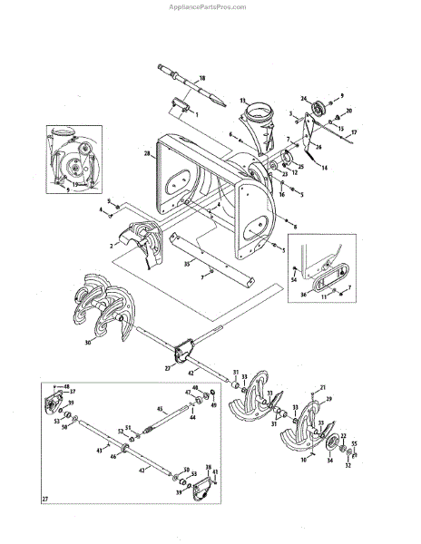 This is a left hand auger assembly that is included with many snowblowers. The auger consists of several rotating blades that collect snow and move it through the augur housing to the chute.If the auger isn't turning and the left hand assembly needs to be replaced, it will require a 3/8 inch socket, a pair of needle-nose pliers, a ½ inch socket, and a grease pump. For the replacement, remove the auger mounts and disassemble the auger shaft transmission to release the auger shaft. Remove the broken or damaged left hand auger assembly after removing any spacers and bushings. Replace the part and reassemble all of the components on the snowblower.This is an authentic OEM replacement part that is sourced directly from the manufacturer. It is sold as an individual component. The left hand auger assembly is created to be used with snowblowers made by Yard-Man, Craftsman, Huskee, Cub Cadet, MTD, Troy-Bilt, and Yard Machines.