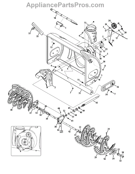 This impeller is a genuine OEM replacement part sourced directly from the manufacturer for use on snowblowers to move snow that has accumulated and is a safety hazard. The impeller rotates to pull the snow up and out a discharge chute. If snow is not blowing out of the blower, the impeller should be checked to ensure it is rotating. If the impeller is not rotating, it will need to be removed and replaced for the blower to function properly.Remove the spark plug from the machine and drain the gas from the engine. Disconnect the control cables and separate the engine of the blower from the blower itself. Remove the auger to access the impeller. Remove the impeller from the blower and install the new one. Reassemble the snowblower and refill the gas. Put the spark plug back in and fire up the engine to test the new impeller. This impeller is sold as an individual unit. It is designed for use in snowblowers that are manufactured by MTD, Yard Machines, Yard-Man, Troy-Bilt, Husky, and Cub Cadet.
