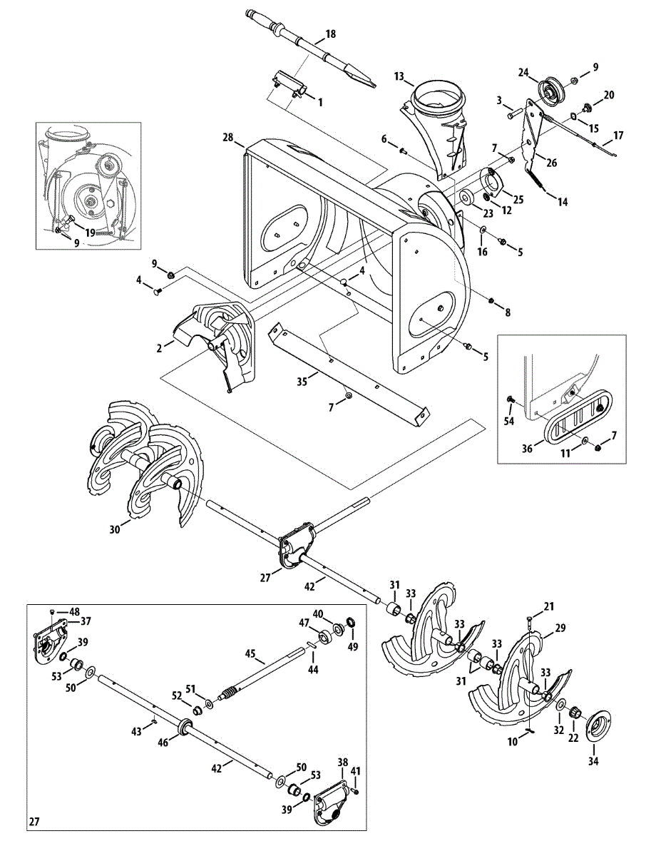 This is a left hand auger assembly that is included with many snowblowers. The auger consists of several rotating blades that collect snow and move it through the augur housing to the chute.If the auger isn't turning and the left hand assembly needs to be replaced, it will require a 3/8 inch socket, a pair of needle-nose pliers, a ½ inch socket, and a grease pump. For the replacement, remove the auger mounts and disassemble the auger shaft transmission to release the auger shaft. Remove the broken or damaged left hand auger assembly after removing any spacers and bushings. Replace the part and reassemble all of the components on the snowblower.This is an authentic OEM replacement part that is sourced directly from the manufacturer. It is sold as an individual component. The left hand auger assembly is created to be used with snowblowers made by Yard-Man, Craftsman, Huskee, Cub Cadet, MTD, Troy-Bilt, and Yard Machines.
