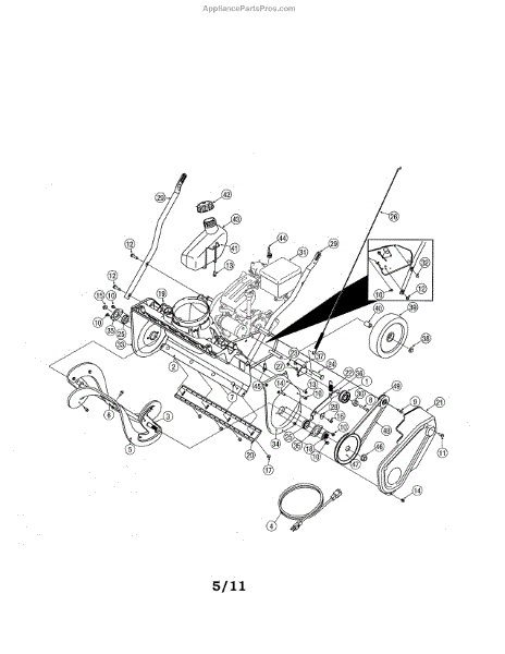 This is an idler pulley assembly for a snowblower or tiller. The idler pulley works together with other pulleys to drive the belt system in an engine. It regulates the belts connecting to the crankshaft to produce movement in various engine accessories. This is a genuine OEM part and is sold individually. This part is compatible with Craftsman, Cub Cadet, Huskee, Troy-Bilt, and Yard Machines. Over time, the pulley components wear down and begin to slip. Damaged bearing devices can also cause wear on the pulley, causing the engine to fail. To replace an idler pulley in a snowblower, remove the ignition key and disconnect the spark plug. Using a socket wrench, remove the mounting bolts securing the belt cover. If required, loosen the tension. Use a ?-inch socket to remove the lower bolts. Pull off the cover and use the wrench to remove the bolt from the pulley. Remove the old part and transfer the bushing into the new part. Position the new pulley, thread the bolt, and tighten. Per model, either realign the auger drive linkage on the bolt and slide on the push nut to secure, or realign and reset the tension spring. Then, recover and reattach.