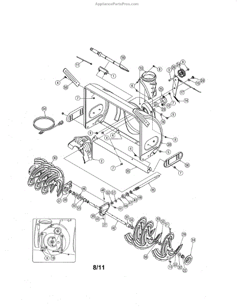 This impeller is a genuine OEM replacement part sourced directly from the manufacturer for use on snowblowers to move snow that has accumulated and is a safety hazard. The impeller rotates to pull the snow up and out a discharge chute. If snow is not blowing out of the blower, the impeller should be checked to ensure it is rotating. If the impeller is not rotating, it will need to be removed and replaced for the blower to function properly.Remove the spark plug from the machine and drain the gas from the engine. Disconnect the control cables and separate the engine of the blower from the blower itself. Remove the auger to access the impeller. Remove the impeller from the blower and install the new one. Reassemble the snowblower and refill the gas. Put the spark plug back in and fire up the engine to test the new impeller. This impeller is sold as an individual unit. It is designed for use in snowblowers that are manufactured by MTD, Yard Machines, Yard-Man, Troy-Bilt, Husky, and Cub Cadet.
