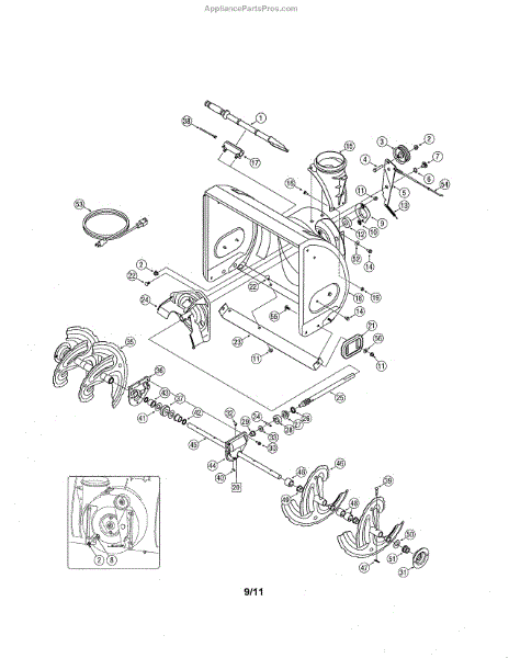This is a left hand auger assembly that is included with many snowblowers. The auger consists of several rotating blades that collect snow and move it through the augur housing to the chute.If the auger isn't turning and the left hand assembly needs to be replaced, it will require a 3/8 inch socket, a pair of needle-nose pliers, a ½ inch socket, and a grease pump. For the replacement, remove the auger mounts and disassemble the auger shaft transmission to release the auger shaft. Remove the broken or damaged left hand auger assembly after removing any spacers and bushings. Replace the part and reassemble all of the components on the snowblower.This is an authentic OEM replacement part that is sourced directly from the manufacturer. It is sold as an individual component. The left hand auger assembly is created to be used with snowblowers made by Yard-Man, Craftsman, Huskee, Cub Cadet, MTD, Troy-Bilt, and Yard Machines.