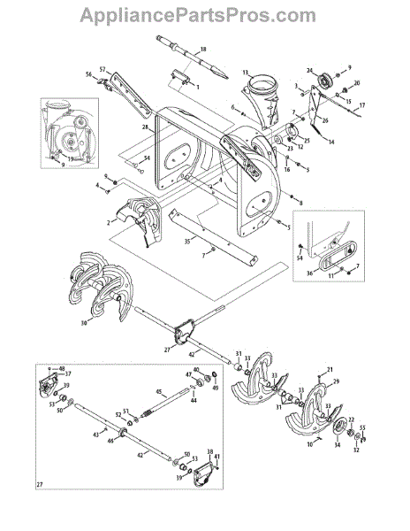 This impeller is a genuine OEM replacement part sourced directly from the manufacturer for use on snowblowers to move snow that has accumulated and is a safety hazard. The impeller rotates to pull the snow up and out a discharge chute. If snow is not blowing out of the blower, the impeller should be checked to ensure it is rotating. If the impeller is not rotating, it will need to be removed and replaced for the blower to function properly.Remove the spark plug from the machine and drain the gas from the engine. Disconnect the control cables and separate the engine of the blower from the blower itself. Remove the auger to access the impeller. Remove the impeller from the blower and install the new one. Reassemble the snowblower and refill the gas. Put the spark plug back in and fire up the engine to test the new impeller. This impeller is sold as an individual unit. It is designed for use in snowblowers that are manufactured by MTD, Yard Machines, Yard-Man, Troy-Bilt, Husky, and Cub Cadet.
