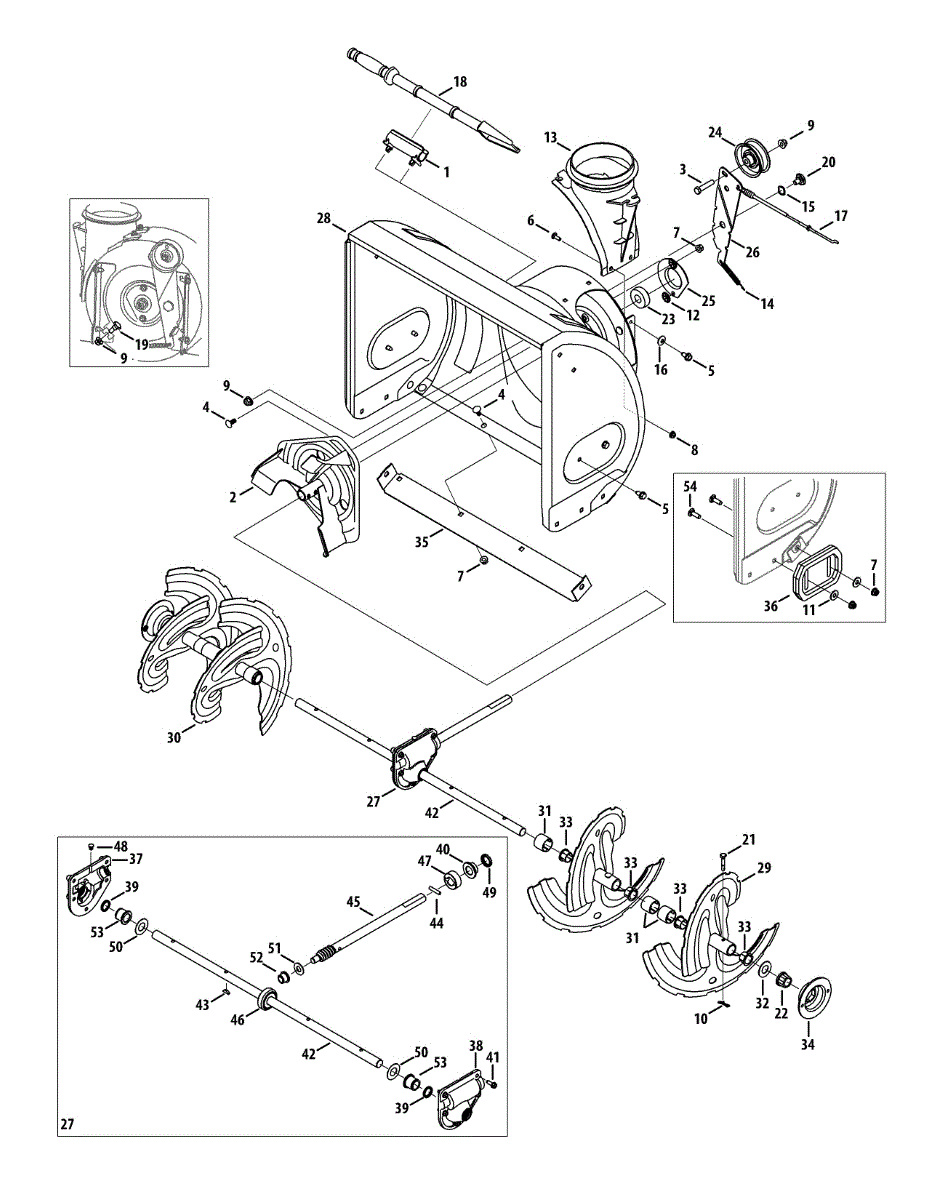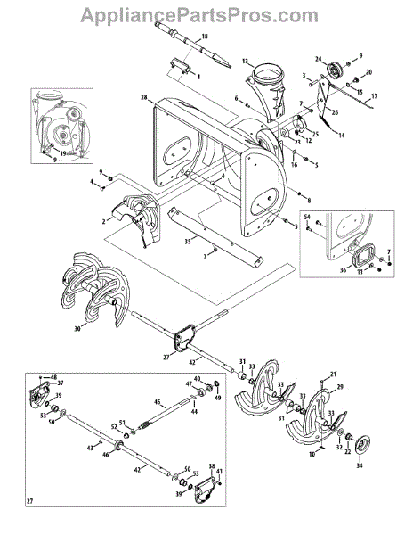 This is a left hand auger assembly that is included with many snowblowers. The auger consists of several rotating blades that collect snow and move it through the augur housing to the chute.If the auger isn't turning and the left hand assembly needs to be replaced, it will require a 3/8 inch socket, a pair of needle-nose pliers, a ½ inch socket, and a grease pump. For the replacement, remove the auger mounts and disassemble the auger shaft transmission to release the auger shaft. Remove the broken or damaged left hand auger assembly after removing any spacers and bushings. Replace the part and reassemble all of the components on the snowblower.This is an authentic OEM replacement part that is sourced directly from the manufacturer. It is sold as an individual component. The left hand auger assembly is created to be used with snowblowers made by Yard-Man, Craftsman, Huskee, Cub Cadet, MTD, Troy-Bilt, and Yard Machines.