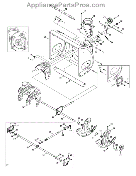 This is a left hand auger assembly that is included with many snowblowers. The auger consists of several rotating blades that collect snow and move it through the augur housing to the chute.If the auger isn't turning and the left hand assembly needs to be replaced, it will require a 3/8 inch socket, a pair of needle-nose pliers, a ½ inch socket, and a grease pump. For the replacement, remove the auger mounts and disassemble the auger shaft transmission to release the auger shaft. Remove the broken or damaged left hand auger assembly after removing any spacers and bushings. Replace the part and reassemble all of the components on the snowblower.This is an authentic OEM replacement part that is sourced directly from the manufacturer. It is sold as an individual component. The left hand auger assembly is created to be used with snowblowers made by Yard-Man, Craftsman, Huskee, Cub Cadet, MTD, Troy-Bilt, and Yard Machines.