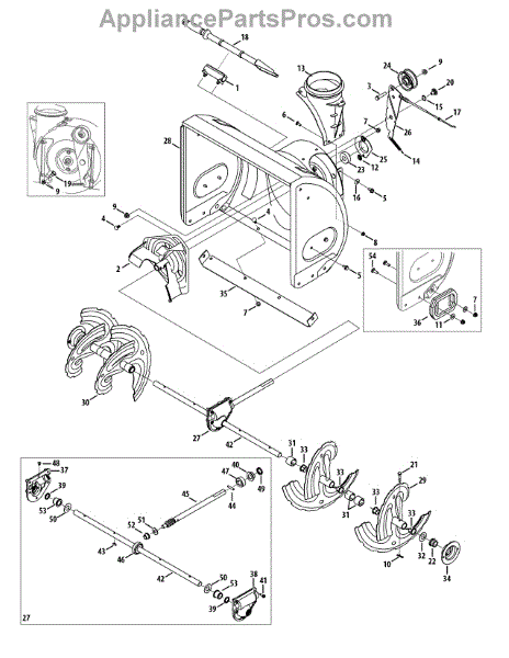 This is a left hand auger assembly that is included with many snowblowers. The auger consists of several rotating blades that collect snow and move it through the augur housing to the chute.If the auger isn't turning and the left hand assembly needs to be replaced, it will require a 3/8 inch socket, a pair of needle-nose pliers, a ½ inch socket, and a grease pump. For the replacement, remove the auger mounts and disassemble the auger shaft transmission to release the auger shaft. Remove the broken or damaged left hand auger assembly after removing any spacers and bushings. Replace the part and reassemble all of the components on the snowblower.This is an authentic OEM replacement part that is sourced directly from the manufacturer. It is sold as an individual component. The left hand auger assembly is created to be used with snowblowers made by Yard-Man, Craftsman, Huskee, Cub Cadet, MTD, Troy-Bilt, and Yard Machines.