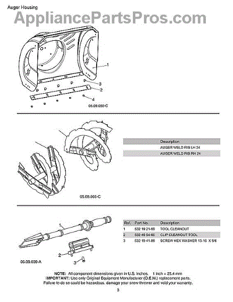 Auger housing kit for gas snowblowers. Replaces cracked, damaged, or corroded housing that protects the auger system. Essential structural component.