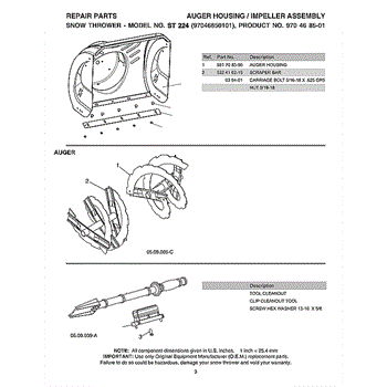 Parts for Husqvarna ST224-970528602: Auger Parts