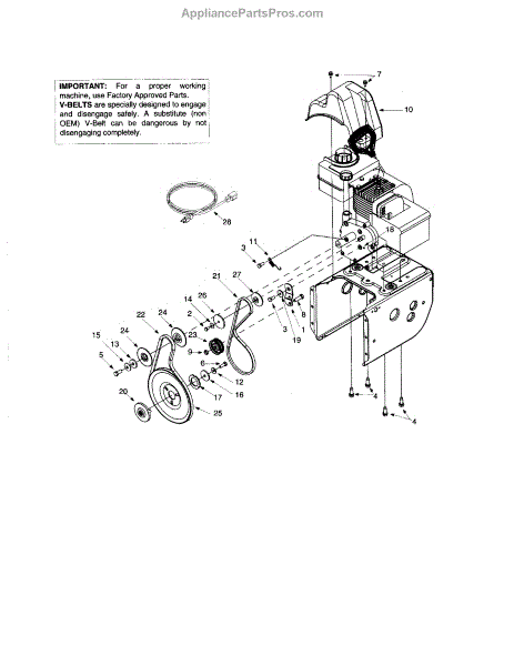 This v-belt is a genuine MTD part, sold individually. This v-belt can be used as a replacement part for a snowblower. The purpose of a v-belt is to facilitate the rotation of the auger and the wheels so the snowblower can move over surfaces and blow snow out of the way of the operator and off of surfaces.The v-belt might have to be replaced in the event that it suffers damage to the point that it can no longer facilitate the rotation of the augur or of the wheels. If the v-belt has been compromised from a puncture, tear, rip, scrape, or sufficient erosion rendering it beyond functionality, the component should be removed and replaced by this genuine OEM replacement part before using the snowblower again. Remember to always wear gloves when handling, repairing, and operating outdoor equipment.This is an OEM part sourced directly from the manufacturer. It is sold individually. This v-belt is compatible with the following outdoor appliance brands: MTD, Craftsman, Ryobi, Troy-Bilt, Yard Machines, Huskee, Montgomery Wards, Bolens, and Yard Man.