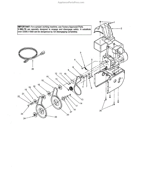 This v-belt is a genuine MTD part, sold individually. This v-belt can be used as a replacement part for a snowblower. The purpose of a v-belt is to facilitate the rotation of the auger and the wheels so the snowblower can move over surfaces and blow snow out of the way of the operator and off of surfaces.The v-belt might have to be replaced in the event that it suffers damage to the point that it can no longer facilitate the rotation of the augur or of the wheels. If the v-belt has been compromised from a puncture, tear, rip, scrape, or sufficient erosion rendering it beyond functionality, the component should be removed and replaced by this genuine OEM replacement part before using the snowblower again. Remember to always wear gloves when handling, repairing, and operating outdoor equipment.This is an OEM part sourced directly from the manufacturer. It is sold individually. This v-belt is compatible with the following outdoor appliance brands: MTD, Craftsman, Ryobi, Troy-Bilt, Yard Machines, Huskee, Montgomery Wards, Bolens, and Yard Man.