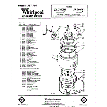 Parts for Whirlpool LDA7600W1: 01 - Automatic Washer , Lit / Optional Parts