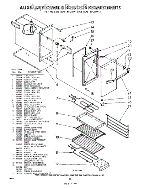 Parts for Whirlpool RDE4900W1: 10 - Auxiliary Oven And Door Parts