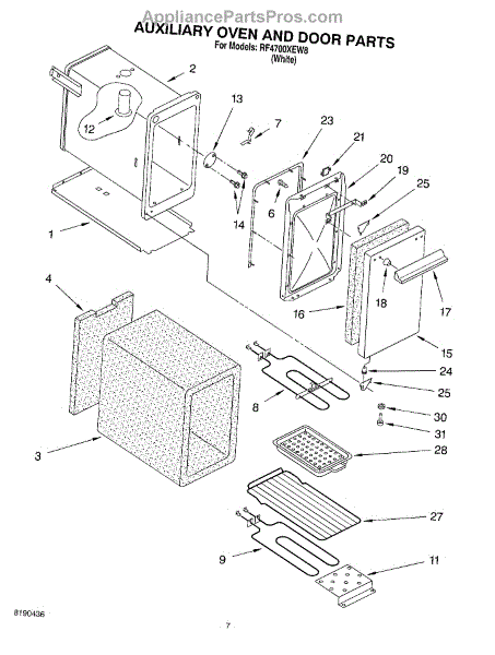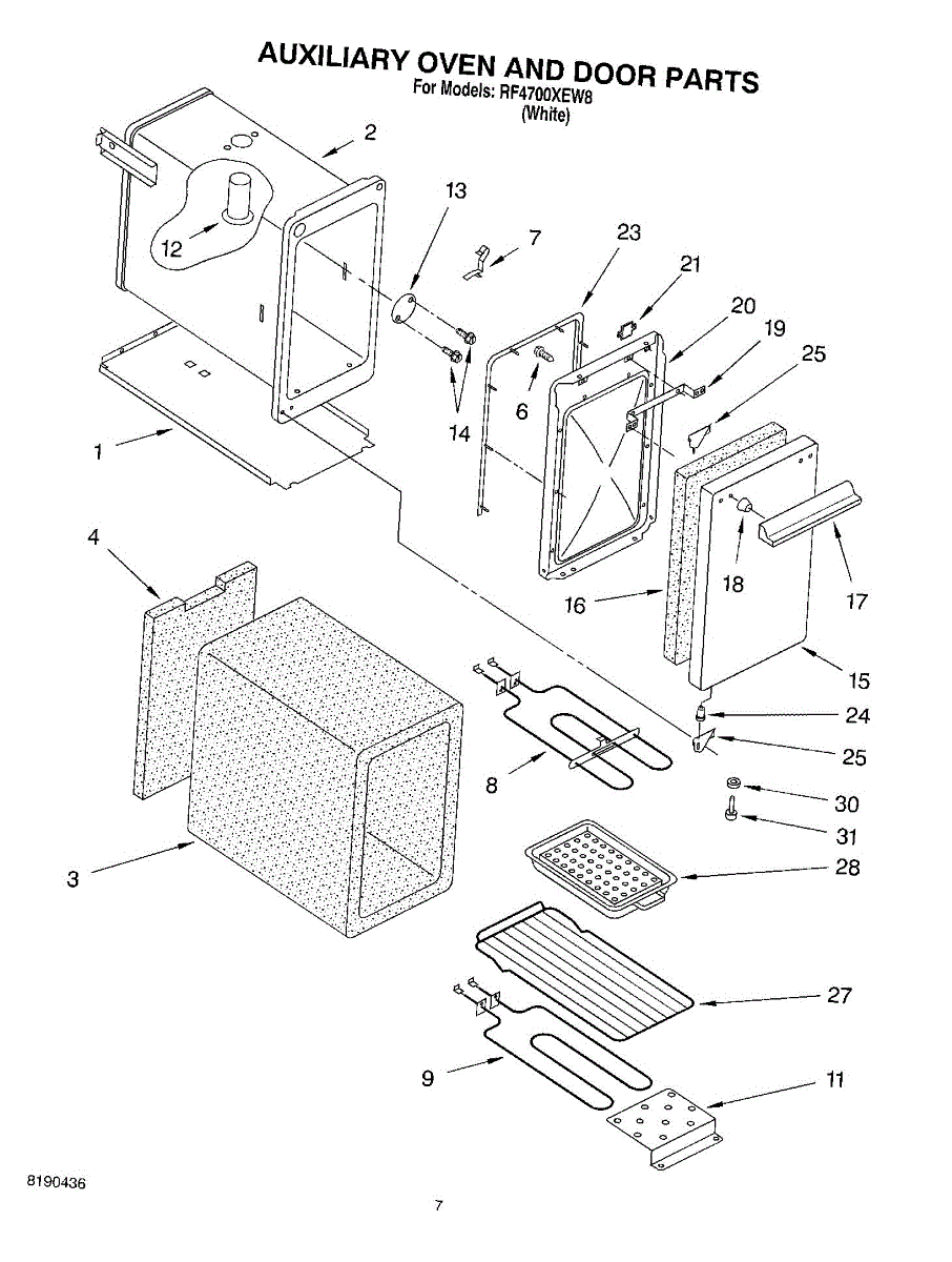 Parts for Whirlpool RF4700XEW8: 04 - Auxiliary Oven And Door Parts