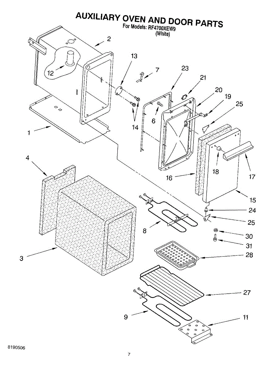 Parts for Whirlpool RF4700XEW9: 04 - Auxiliary Oven And Door Parts