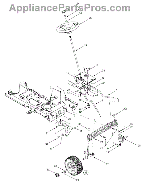 Parts for Yard-Man 13AY614G401 / 2002: Axle And Wheels Front, Steering Parts