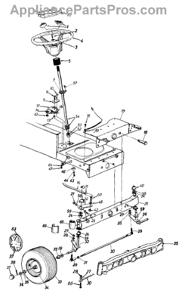 Parts for Yard Machines 13AN695G062 / 1999: Axle, Front, Wheels, Front, Steering Assembly Parts