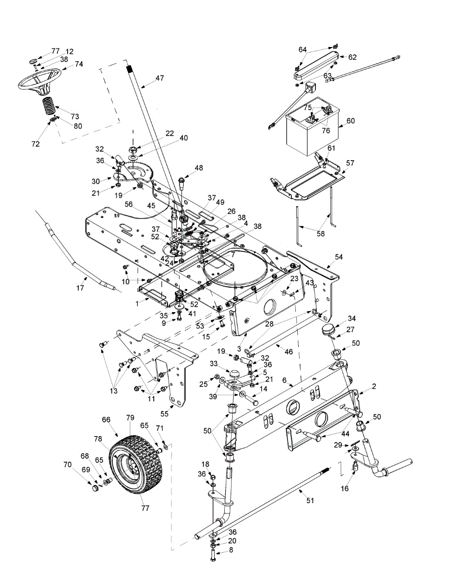 Flat washer for lawn mowers and tractors. Spreads load from bolts and screws to prevent damage. Replace if worn, cracked, or missing hardware.
