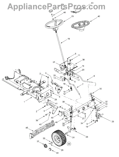 This steering gear is an integral part of the guidance mechanism for riding mowers and lawn tractors. This gear meshes with the turning mechanism of the wheels, connecting the front axle to the steering column. The constant, short diameter turning of riding mowers puts a tremendous amount of pressure on the steering pinion gear as well as the steering plate, causing the teeth of each of these parts to wear out. Over time, the steering will become less responsive until eventually the drive wheels will not respond at all when the steering wheel is turned. This is usually an indication that the steering pinion gear is stripped and must be replaced. Replacing this gear involves removing the nut and bolt that fix the gear to the mowing housing. Often, the bushing that sits beneath the pinion gear also needs to be replaced because of wear, and this is the best time to do that, as well. It's also a good idea to see if the steering plate teeth are also worn, as this is the ideal time to replace it as well. All parts should be replaced with genuine OEM parts, manufactured, as this replacement part is, according the specs of the original part. This pinion gear is compatible with Huskee, Murray, Bolens, Yard Man, Troy-Bilt, MTD, Yard Machine, and Cub Cadet riding mowers. This part sold individually.