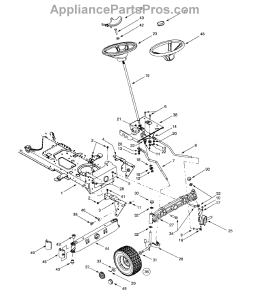 This steering gear is an integral part of the guidance mechanism for riding mowers and lawn tractors. This gear meshes with the turning mechanism of the wheels, connecting the front axle to the steering column. The constant, short diameter turning of riding mowers puts a tremendous amount of pressure on the steering pinion gear as well as the steering plate, causing the teeth of each of these parts to wear out. Over time, the steering will become less responsive until eventually the drive wheels will not respond at all when the steering wheel is turned. This is usually an indication that the steering pinion gear is stripped and must be replaced. Replacing this gear involves removing the nut and bolt that fix the gear to the mowing housing. Often, the bushing that sits beneath the pinion gear also needs to be replaced because of wear, and this is the best time to do that, as well. It's also a good idea to see if the steering plate teeth are also worn, as this is the ideal time to replace it as well. All parts should be replaced with genuine OEM parts, manufactured, as this replacement part is, according the specs of the original part. This pinion gear is compatible with Huskee, Murray, Bolens, Yard Man, Troy-Bilt, MTD, Yard Machine, and Cub Cadet riding mowers. This part sold individually.