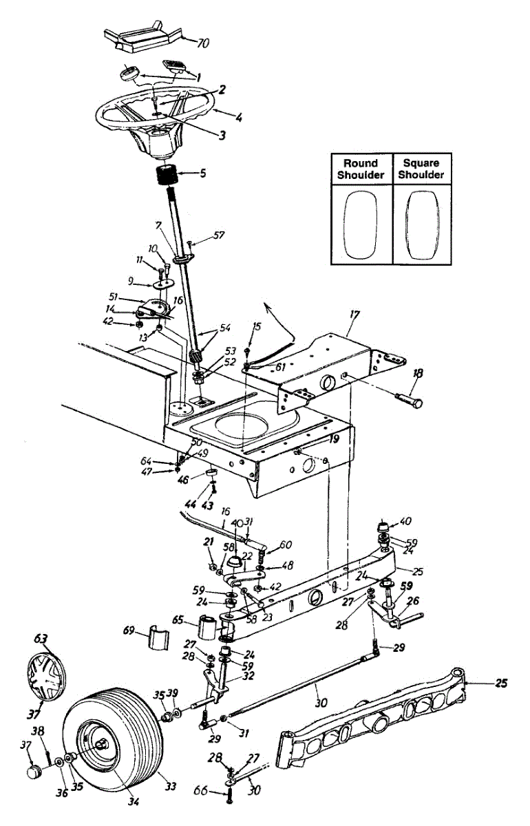 Tie rod connects steering components on lawn tractors and garden tractors. Replace if bent, cracked, or worn to restore proper steering linkage alignment.