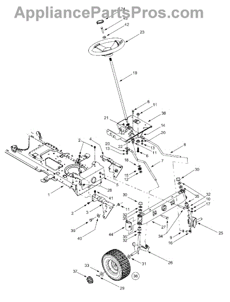 This steering gear is an integral part of the guidance mechanism for riding mowers and lawn tractors. This gear meshes with the turning mechanism of the wheels, connecting the front axle to the steering column. The constant, short diameter turning of riding mowers puts a tremendous amount of pressure on the steering pinion gear as well as the steering plate, causing the teeth of each of these parts to wear out. Over time, the steering will become less responsive until eventually the drive wheels will not respond at all when the steering wheel is turned. This is usually an indication that the steering pinion gear is stripped and must be replaced. Replacing this gear involves removing the nut and bolt that fix the gear to the mowing housing. Often, the bushing that sits beneath the pinion gear also needs to be replaced because of wear, and this is the best time to do that, as well. It's also a good idea to see if the steering plate teeth are also worn, as this is the ideal time to replace it as well. All parts should be replaced with genuine OEM parts, manufactured, as this replacement part is, according the specs of the original part. This pinion gear is compatible with Huskee, Murray, Bolens, Yard Man, Troy-Bilt, MTD, Yard Machine, and Cub Cadet riding mowers. This part sold individually.