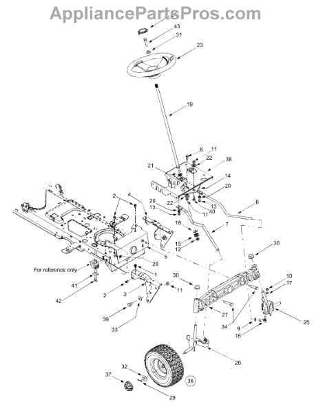 This steering gear is an integral part of the guidance mechanism for riding mowers and lawn tractors. This gear meshes with the turning mechanism of the wheels, connecting the front axle to the steering column. The constant, short diameter turning of riding mowers puts a tremendous amount of pressure on the steering pinion gear as well as the steering plate, causing the teeth of each of these parts to wear out. Over time, the steering will become less responsive until eventually the drive wheels will not respond at all when the steering wheel is turned. This is usually an indication that the steering pinion gear is stripped and must be replaced. Replacing this gear involves removing the nut and bolt that fix the gear to the mowing housing. Often, the bushing that sits beneath the pinion gear also needs to be replaced because of wear, and this is the best time to do that, as well. It's also a good idea to see if the steering plate teeth are also worn, as this is the ideal time to replace it as well. All parts should be replaced with genuine OEM parts, manufactured, as this replacement part is, according the specs of the original part. This pinion gear is compatible with Huskee, Murray, Bolens, Yard Man, Troy-Bilt, MTD, Yard Machine, and Cub Cadet riding mowers. This part sold individually.