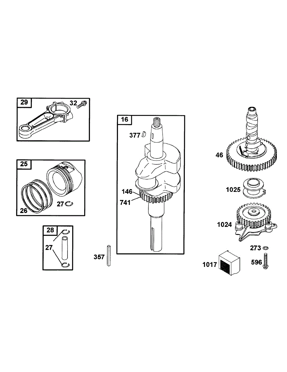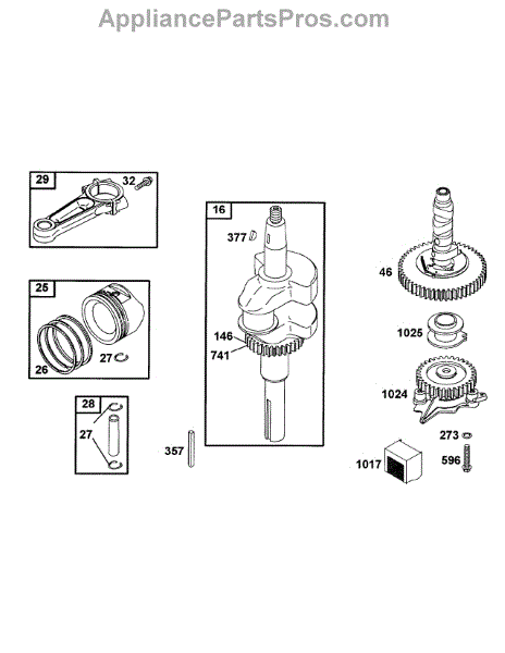 Parts for Mtd Pro 53AB555M195: B&S Connecting Rod, Piston Group, Crankshaft, Cam Parts