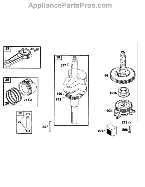 Parts for Mtd Pro 55AF3C5M195: B&S Connecting Rod, Piston Group, Crankshaft Parts