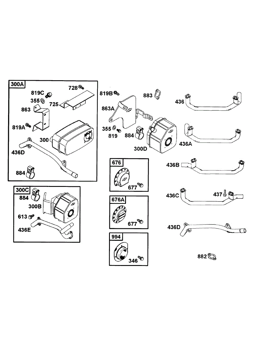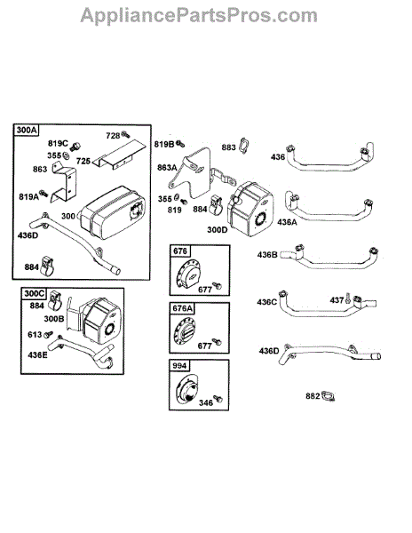 Parts for Mtd Pro 53AB555M195: B&S Muffler Groups, Manifolds Parts