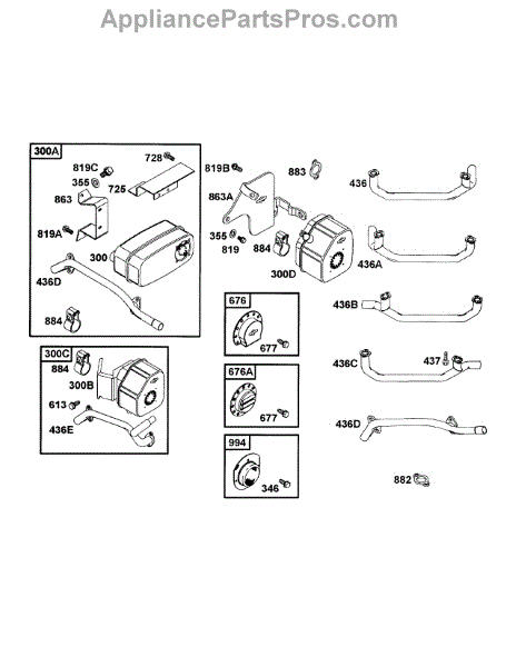 Parts for Mtd Pro 55AF3C5T195: B&S Muffler Groups, Manifolds Parts
