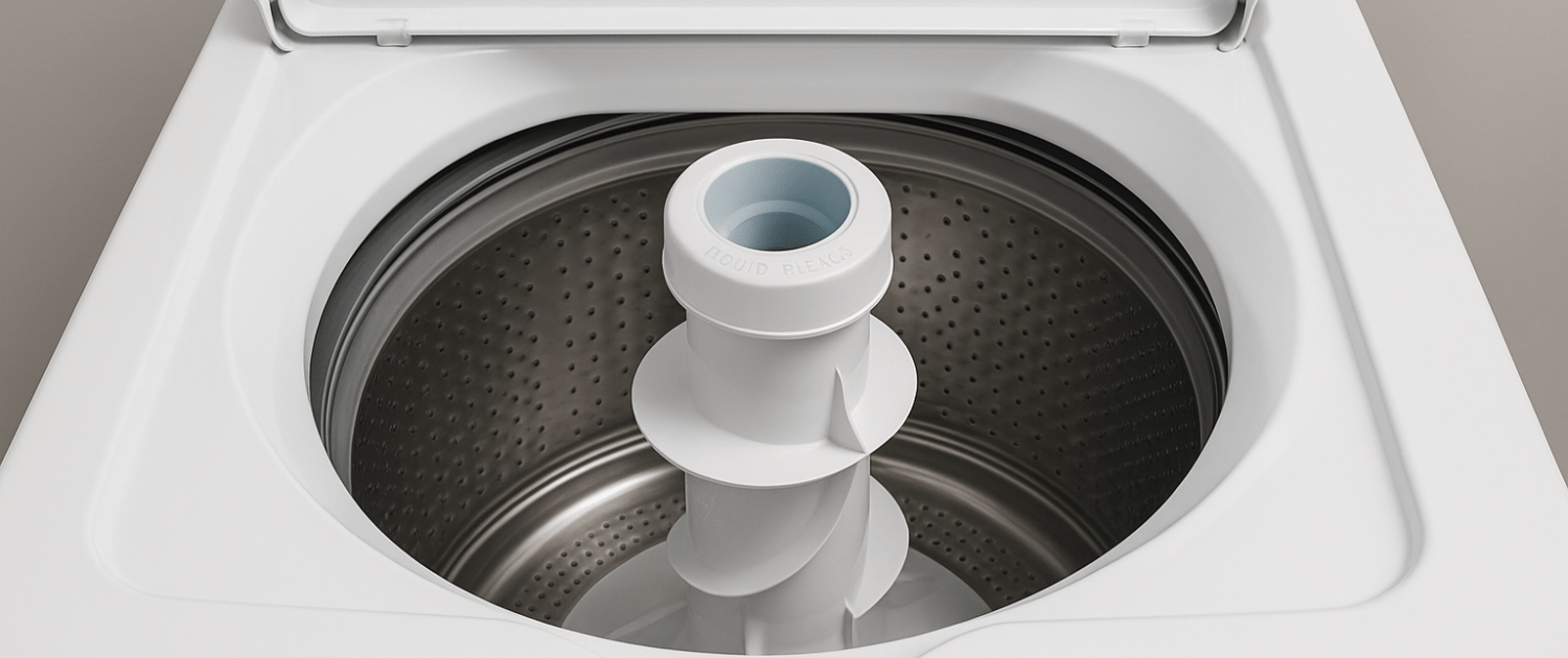 2. Locate the fabric softener dispenser on top of the agitator in the middle of the wash tub.